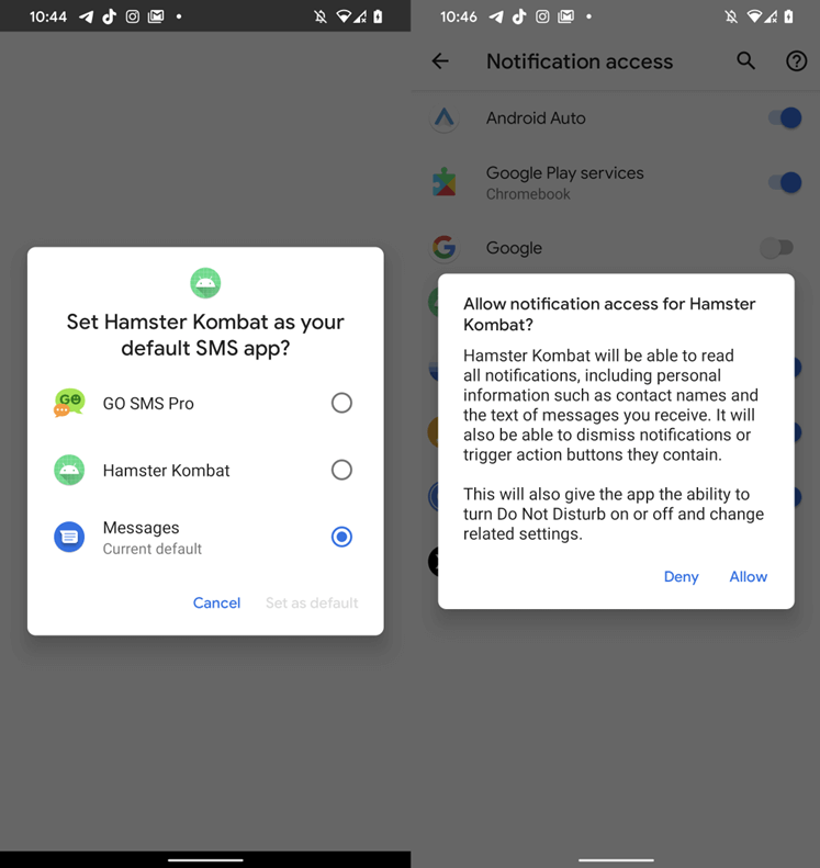 Obrázok 8. Škodlivé žiadosti o prístup pre hru Hamster Kombat